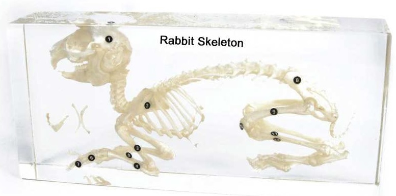 Akrylátový model kostry zajaca 200 x 90 x 40 mm, 870g.