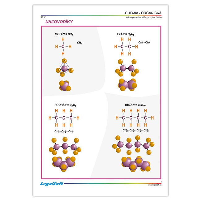 Súbor kartónových obrazov nadväzuje na predchádzajúcu sadu anorganickej chémie a umožňuje jednoduchý prístup k organickej chémii, ktorá sa učí na základných a stredných školách. Zobrazuje 12 tém: uhľovodíky, deriváty uhľovodíkov, prírodné látky, redoxné reakcie, zmeny energie sústavy pri chemických reakciách, rýchlosť chemických reakcií, chemické rovnice, slávni chemici, chemická tabuľka.