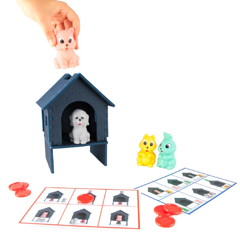 Cieľom didaktickej pomôcky je rozvoj priestorového vnímania cez správne používanie výrazov hore, dolu, nad, pod, vpravo, vľavo, vpredu, vzadu, dnu, von, a pod. Pomôcku je možné používať v dvoch úrovniach obtiažnosti – rovinnej a priestorovej. Obsahuje pedagogický návod.