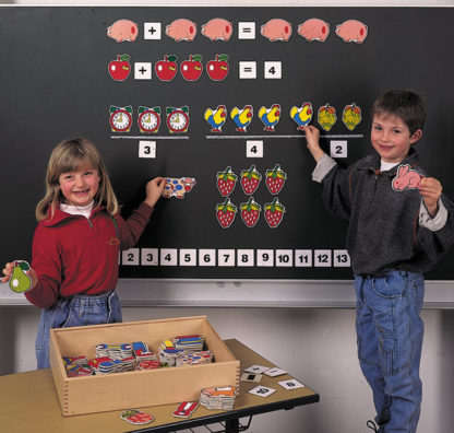 Magnetická sada, pomocou ktorej je možné predviesť na tabuli spoločné počítanie, triedenie podľa druhov, aj rozdelenie. Časti sú vyrobené z 3mm hrubého dreva a pokryté farebnou fóliou s magnetom na zadnej strane.