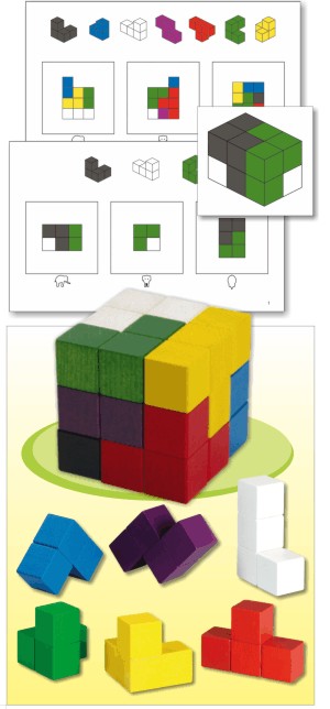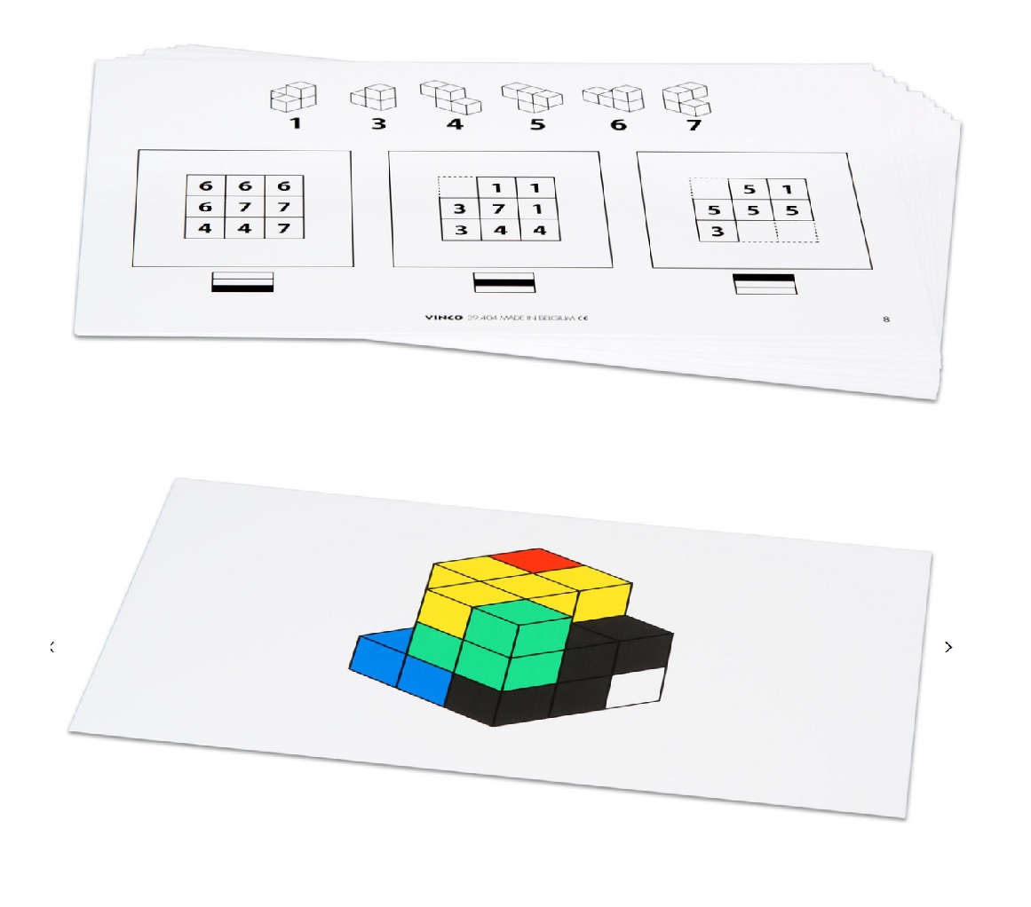 Set 4 obsahuje 10ks kariet s najvyšším stupňom obtiažnosti Na vytvorenie 3D tvarov s použitím najviac 7 dielikov.