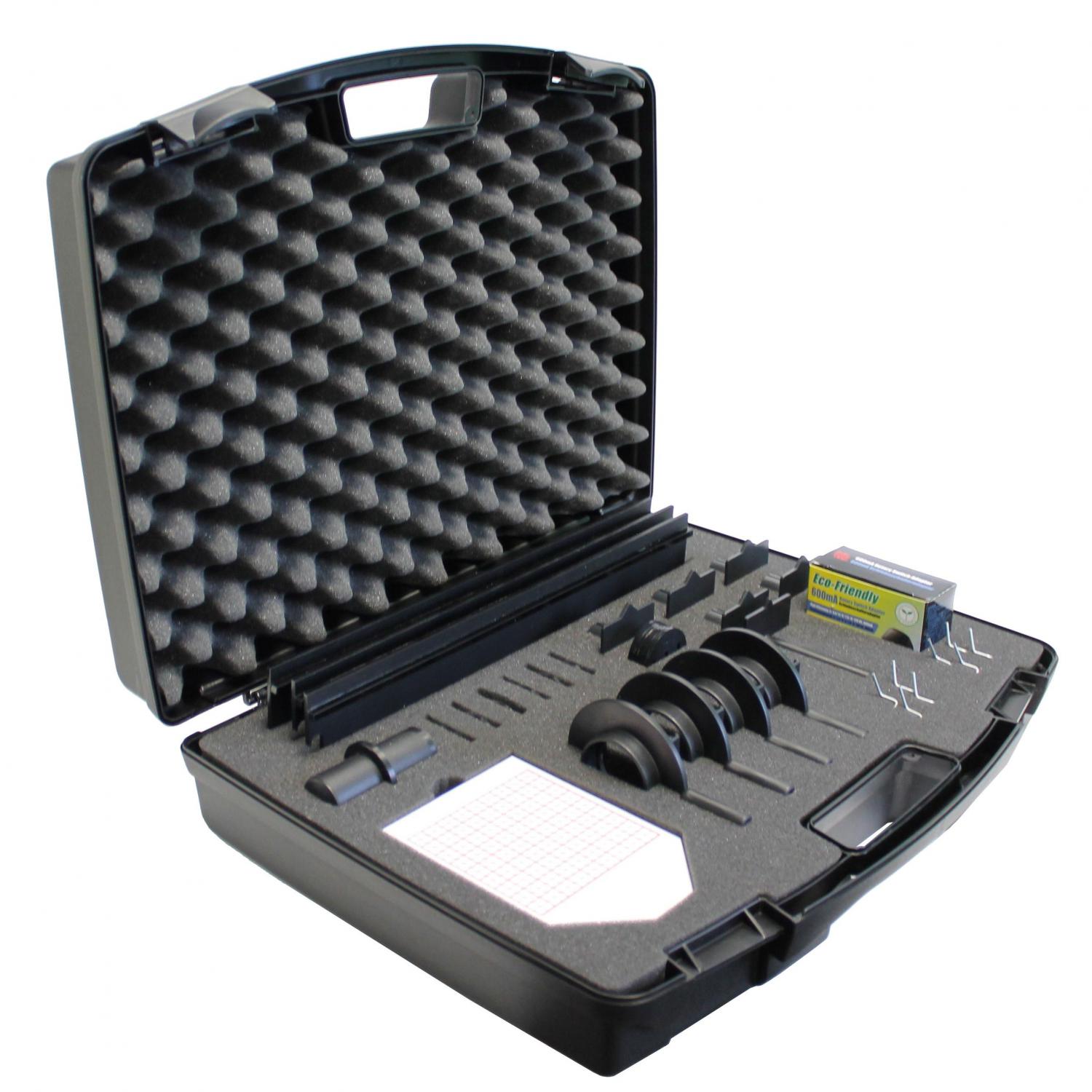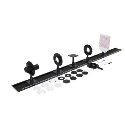 Súprava obsahuje všetky diely na základné experimenty s geometrickou optikou. Všetky komponenty sú uložené v praktickom kufri s penovou vložkou. Obsah dodávky: 1 optická lavica z plastu 1100mm, 3dielna, 1 LED zdroj svetla (3W) so sieťovým adaptérom, 5 plastových jazdcov, držiaky šošoviek, držiak na optický hranol, 1 premietacie tienidlo s mriežkou, 6 plastových šošoviek.