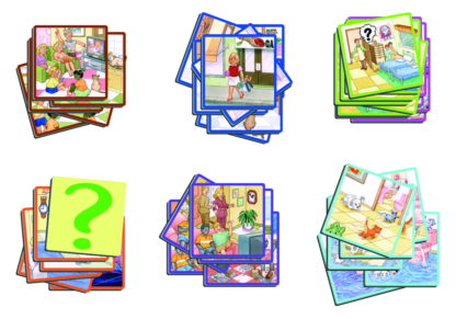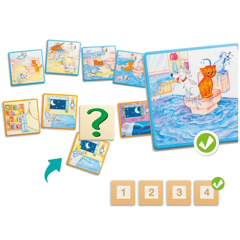 12 veselých príbehov je založených na vtipných situáciách s ktorými sa deti môžu stretnúť doma. Hra je doplnená o kartičky s otáznikmi, pomocou ktorých je možné nahradiť časť sekvencie. To pomáha vytvoriť priestor pre rozvoj vlastnej predstavivosti. Obsahuje samokontrolný opravný systém a pedagogický návod.