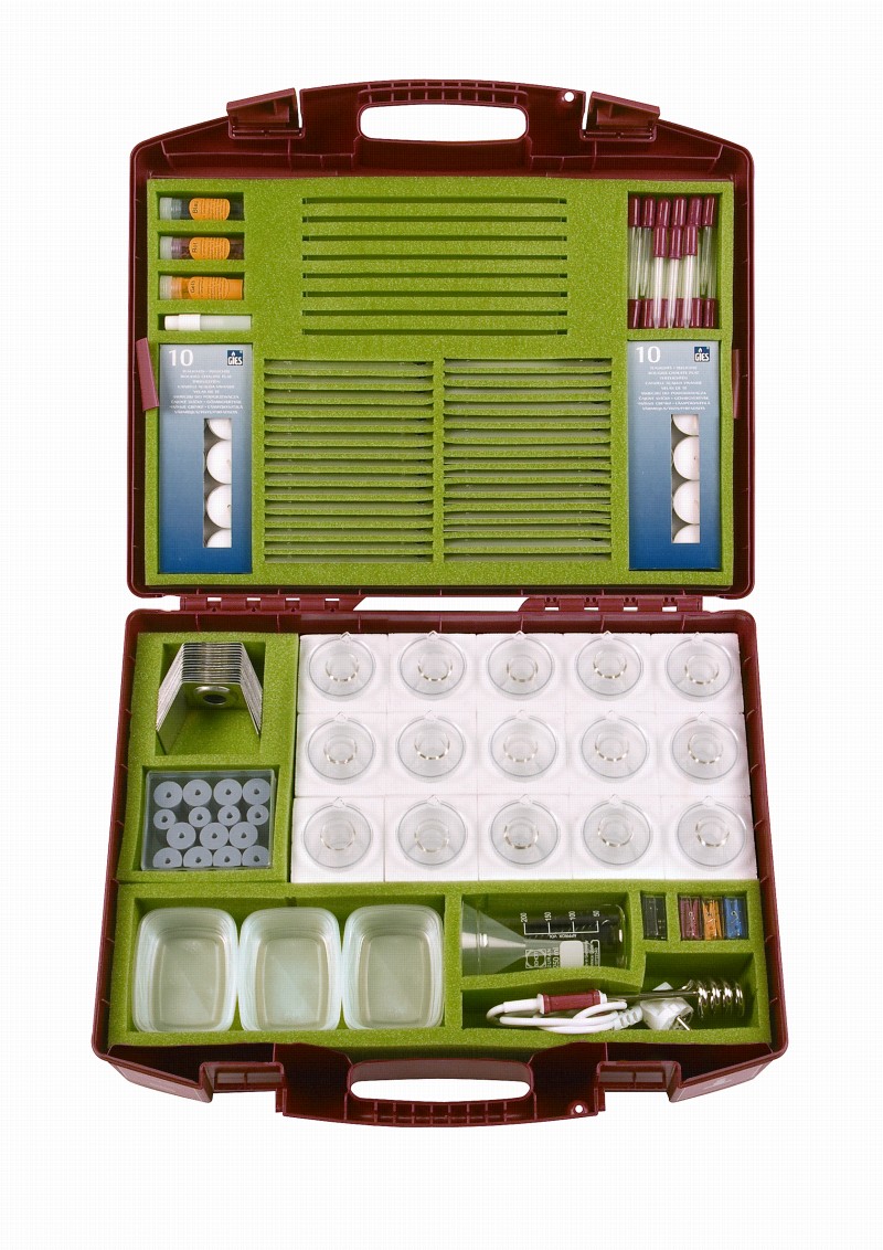 Učebná téma termometer: pomocou zostavovacieho termometra sa žiaci naučia princípy tepla a tepelnej rozťažnosti. Sú schopní urobiť si stupnicu sami, spoznať Celziovú stupnicu a naučiť sa z nej čítať. Môžu určiť bod topenia a varu vody na termometri bez dielikov. Učebná téma odparovanie a kondenzácia: žiaci sa naučia porozumieť termínom odparovanie a kondenzácia. Rozmery: 54 x 45 x 15cm. Obsahuje materiál pre 15 pracovných skupín.